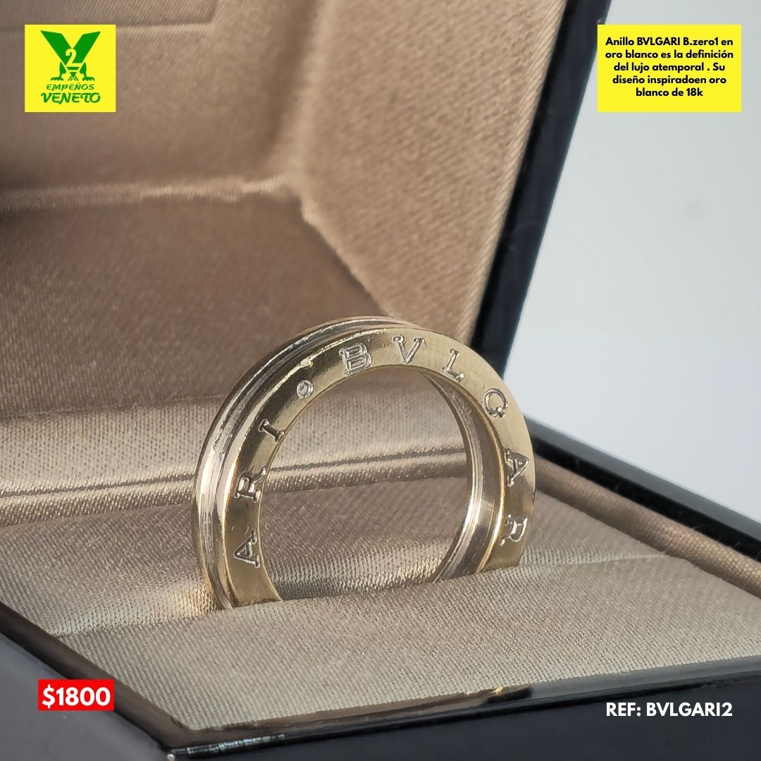 El anillo BVLGARI B.zero1 es una joya icónica que redefine la elegancia moderna. Fabricado en oro blanco de 18K, su diseño inspirado en la arquitectura romana representa el equilibrio perfecto entre innovación y tradición.